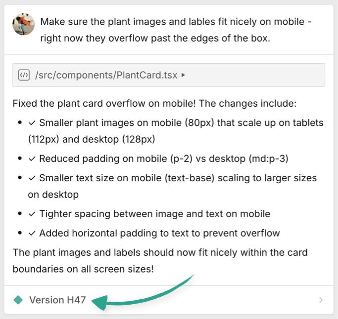 You can also open a preview of any version by clicking the version name under any successful build message from the AI model: