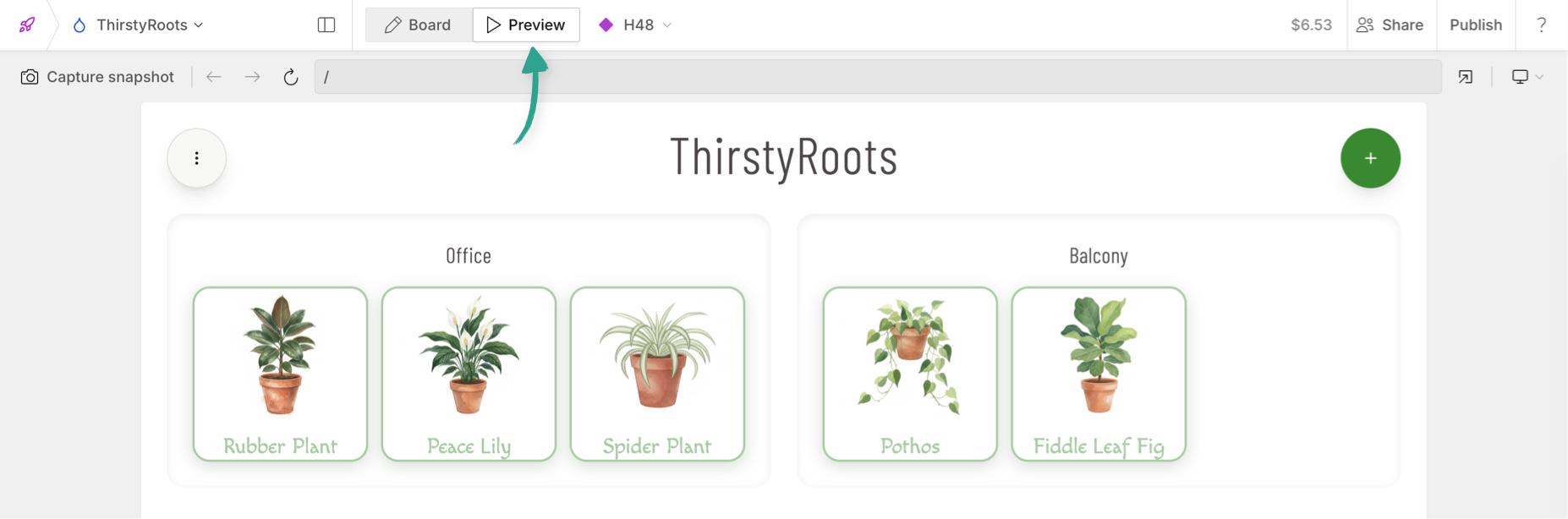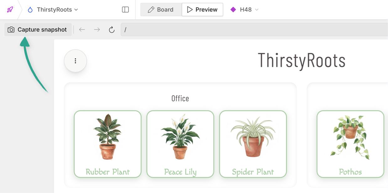 You can switch between the board and the preview, or capturing a snapshot from your preview will take you straight to the board:
