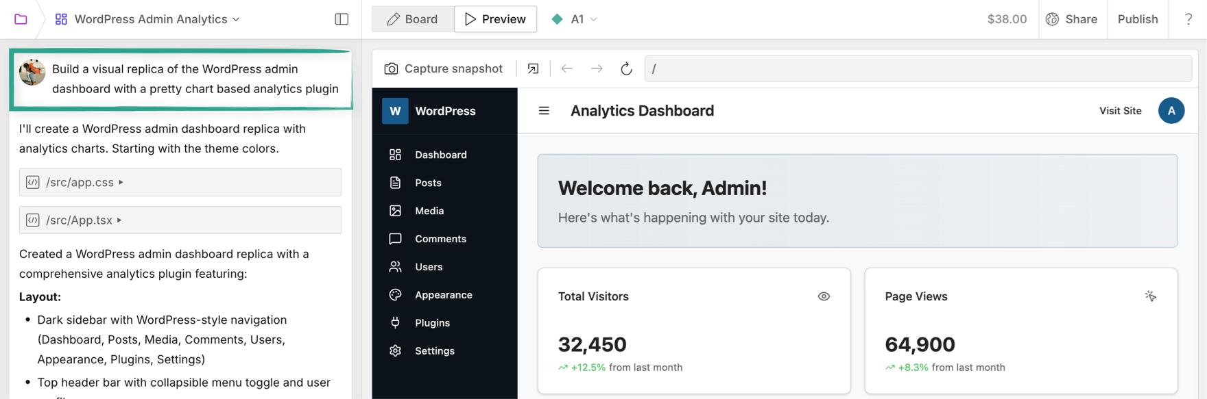 Applet specializes in building React apps, it cannot make you a WordPress plugin, or a Chrome extension etc. You can however prototype these apps, as Applet is more than capable of mocking up the WordPress interface, or some browser functionality 👌